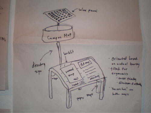 The team collected user data through contextual interviews. By working with the user as they interacted with the directory, the team hoped to gather clear and useful data about how people use the maps, what they liked about them, and the problems that occurred in the process. The team interviewed eleven users of varying ages and experiences with UCSD. Some were students from different colleges, some were community members and vendors, and one woman was on campus to perform an audit for a business company. The interviewer and user either approached a directory together on a retrospective account or the interviewer approached someone in the middle of using the directory. Informed conset was obtained for each user. In addition to contextual interviews the team also investigated other directories located in malls and hospitals.