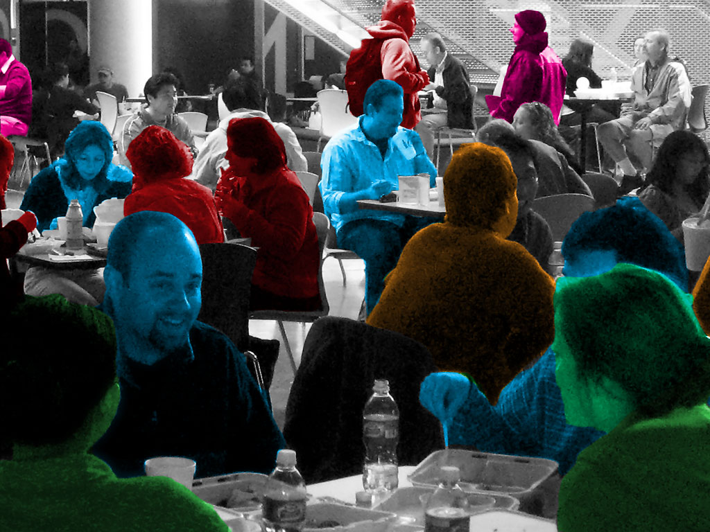 Our experience of space is continually becoming more and more privatized. We travel in the small private space of a car, live in a climate controlled house/apartment, and walk from place to place with a private soundtrack in our ears via iPod earbuds, etc. In the future vision may come to be a private experience as well. By modifying vision one can selectively choose what and what not to see (for example: parts of the field of vision taken up by ads are replaced by images of your bank balance), highlight important images in the scenery, accentuate the visual world to one’s stylistic liking; there are an infinite number of applications. Technicolor Vision experiments with the use of visual filters to represent social networking data.