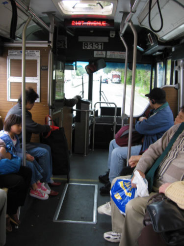 - Bus Interior: pay station in the bus - forces users to stand while paying, must have exact change, bus needs to wait while user pays, or user must try to balance as the bus moves forward, bus driver announcements are often unheard due to background noise or cellphone use