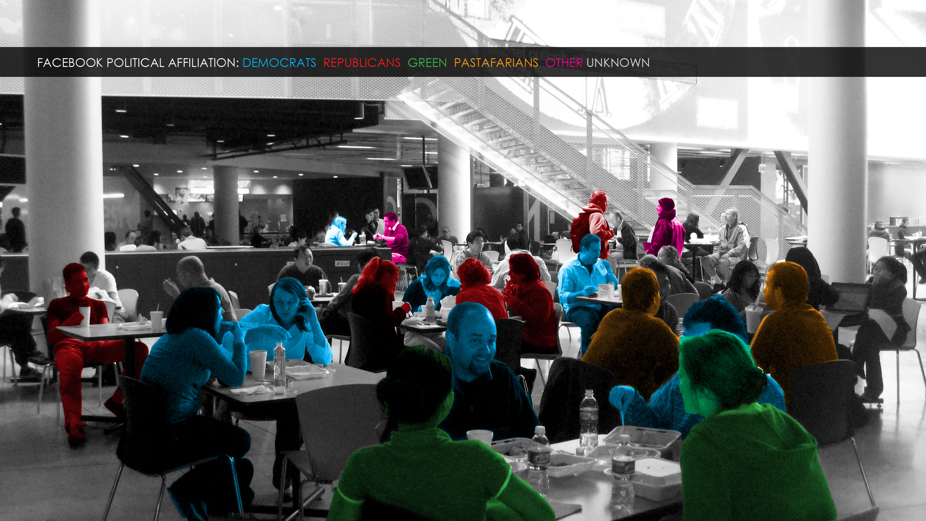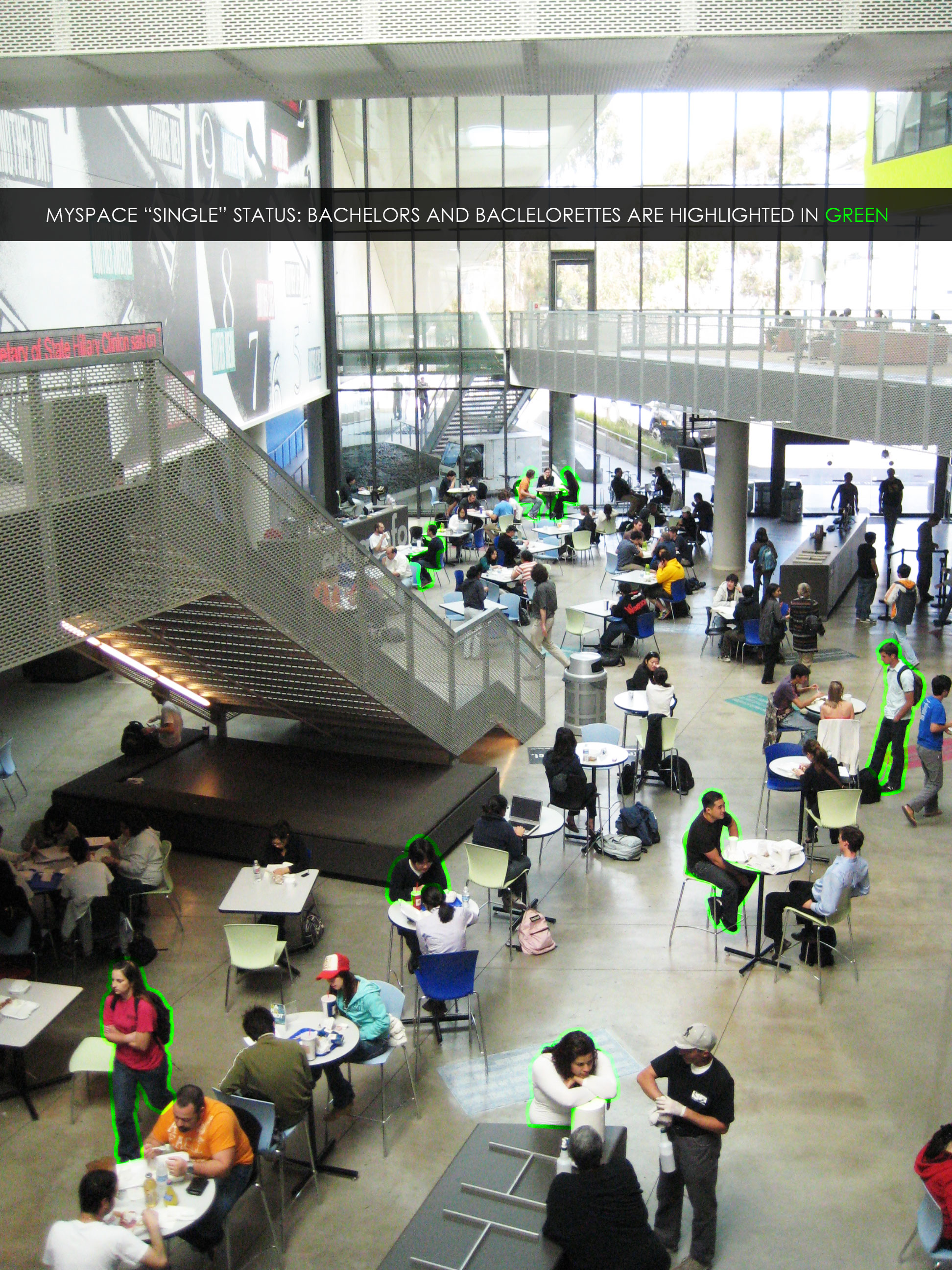 Our experience of space is continually becoming more and more privatized. We travel in the small private space of a car, live in a climate controlled house/apartment, and walk from place to place with a private soundtrack in our ears via iPod earbuds, etc. In the future vision may come to be a private experience as well. By modifying vision one can selectively choose what and what not to see (for example: parts of the field of vision taken up by ads are replaced by images of your bank balance), highlight important images in the scenery, accentuate the visual world to one’s stylistic liking; there are an infinite number of applications. Technicolor Vision experiments with the use of visual filters to represent social networking data.